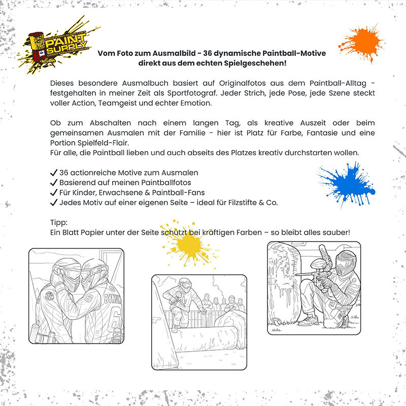 Ob jung oder alt – in diesem Paintball Ausmalbuchkommt jeder auf seine Kosten: