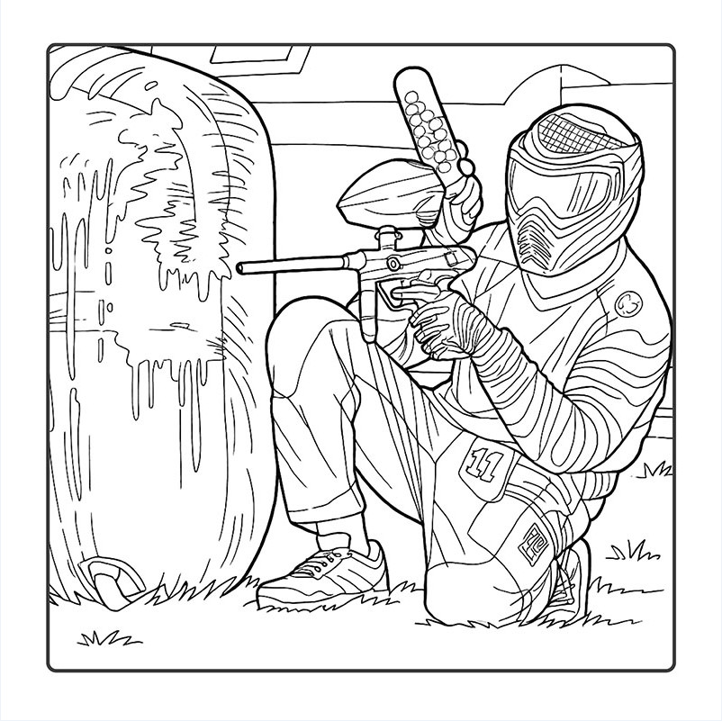 Dieses außergewöhnliche Ausmalbuch bringt echtes Paintball-Feeling aufs Papier.